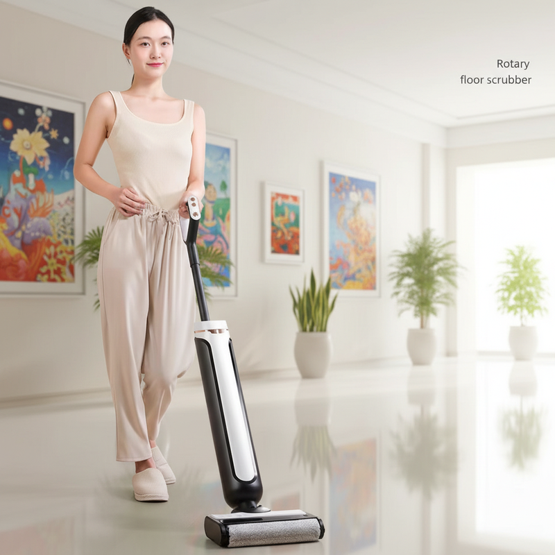 此为集吸拖洗于一体的无线多功能地面自清洁家电,选用沉浸式清洁模式,创新延边性能,滚刷专利结构设计。内置智能识别元件,配备优质机芯、无刷电机、抑菌滚刷、LED大屏、大容量水箱、大容量电池、自清洗底座、可拆卸手柄、状态提醒灯带。并且污水箱固液分离、干湿垃圾分离、智能语音播报、滚刷异常提醒、缺水提示、满水提示。轻便灵活,自由掌控。